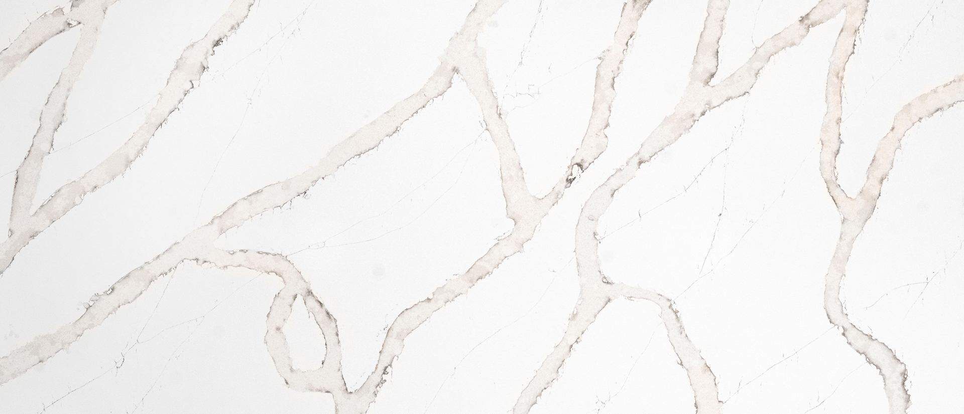 Calacatta Goa™ features a warm white background and stunning, thick russet veining with hints of dark brown around the perimeter for an eye-catching look that will make an impact in any room.