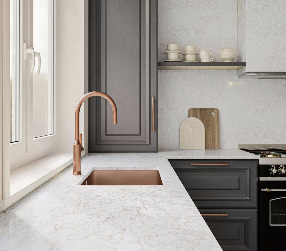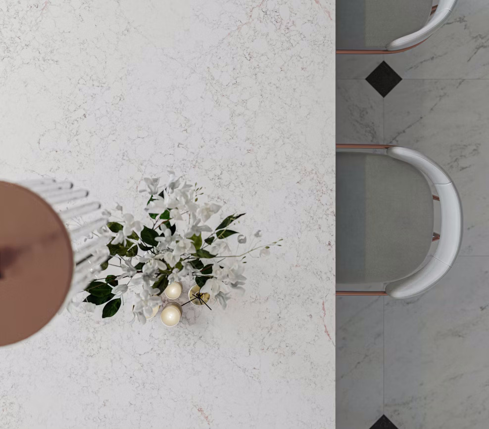 Silestone Riviére-Rose is a distinctive and glamorous surface that features a delicate, soft pink or dusty rose background. This unique hue is enriched by subtle, diffused white and reddish-brown veining that adds depth and movement. Riviére-Rose offers a sophisticated, warm, and highly expressive aesthetic, perfect for designs seeking a bold yet elegant departure from traditional neutrals.