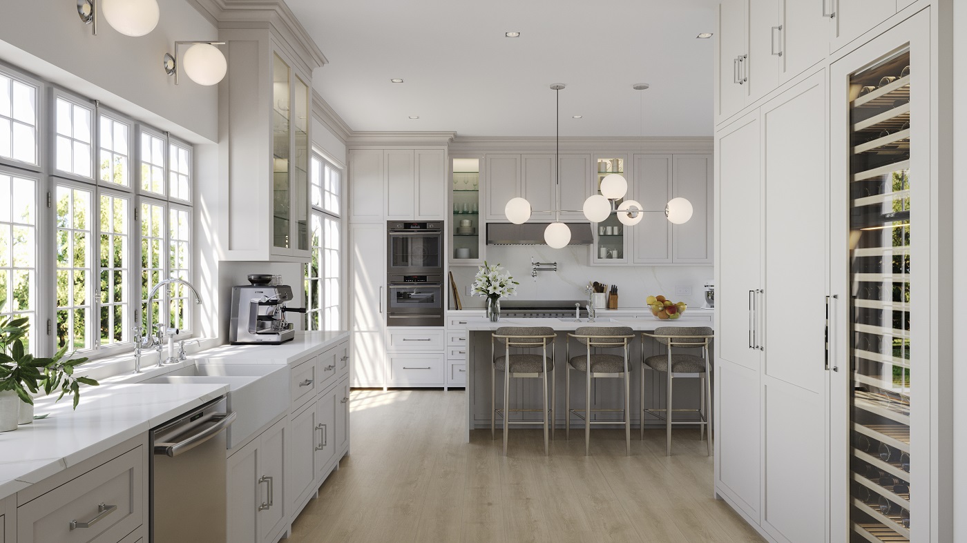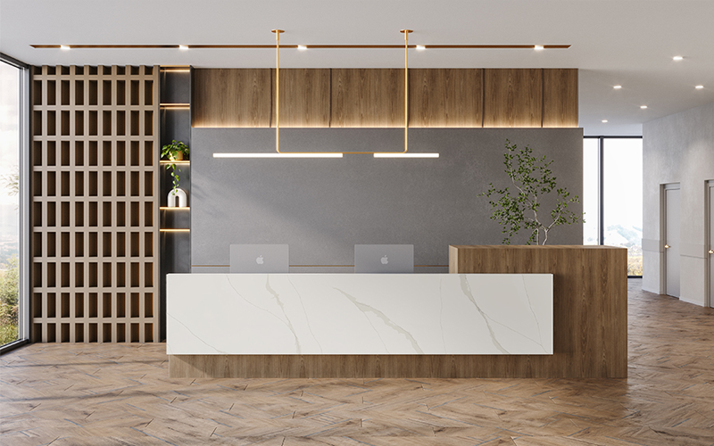 Calacatta Oro brings calm elegance to modern interiors with a soft off-white base and delicate gray and gold veining, creating a serene and sophisticated look inspired by natural marble.