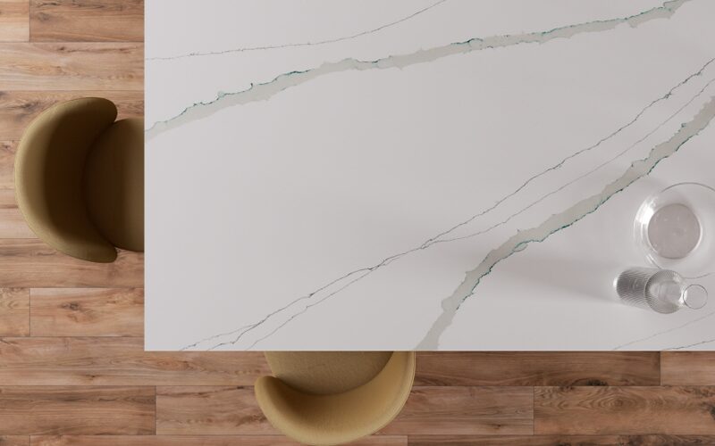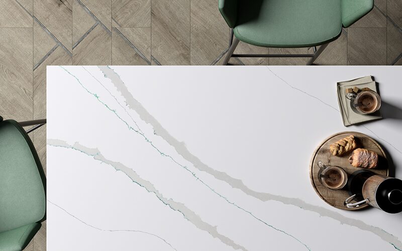 Calacatta Verde captures the calm beauty of a hidden forest, with delicate green and grayish-green veins branching gracefully across a bright white base. Its natural depth and organic patterns bring a serene, tranquil elegance to any space.